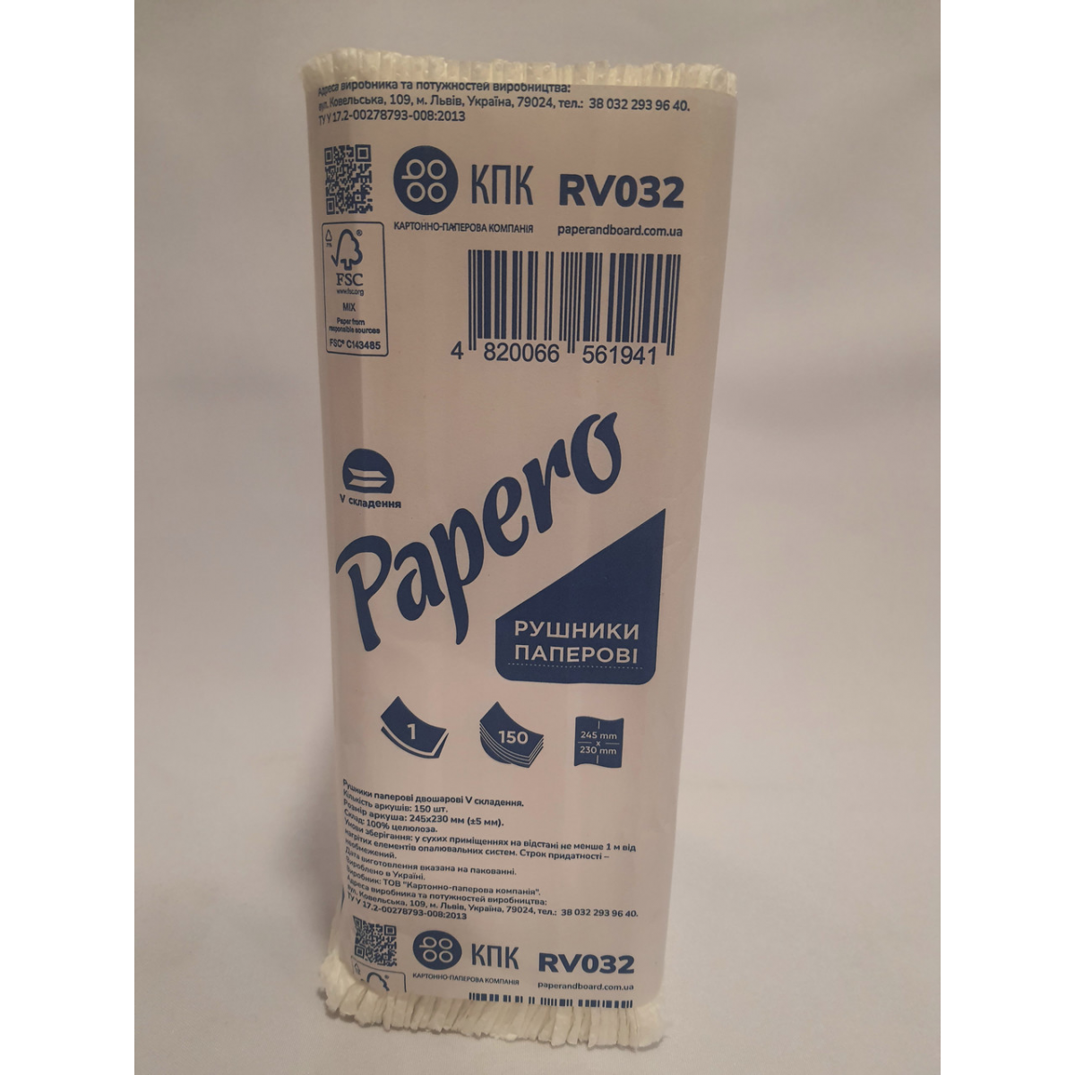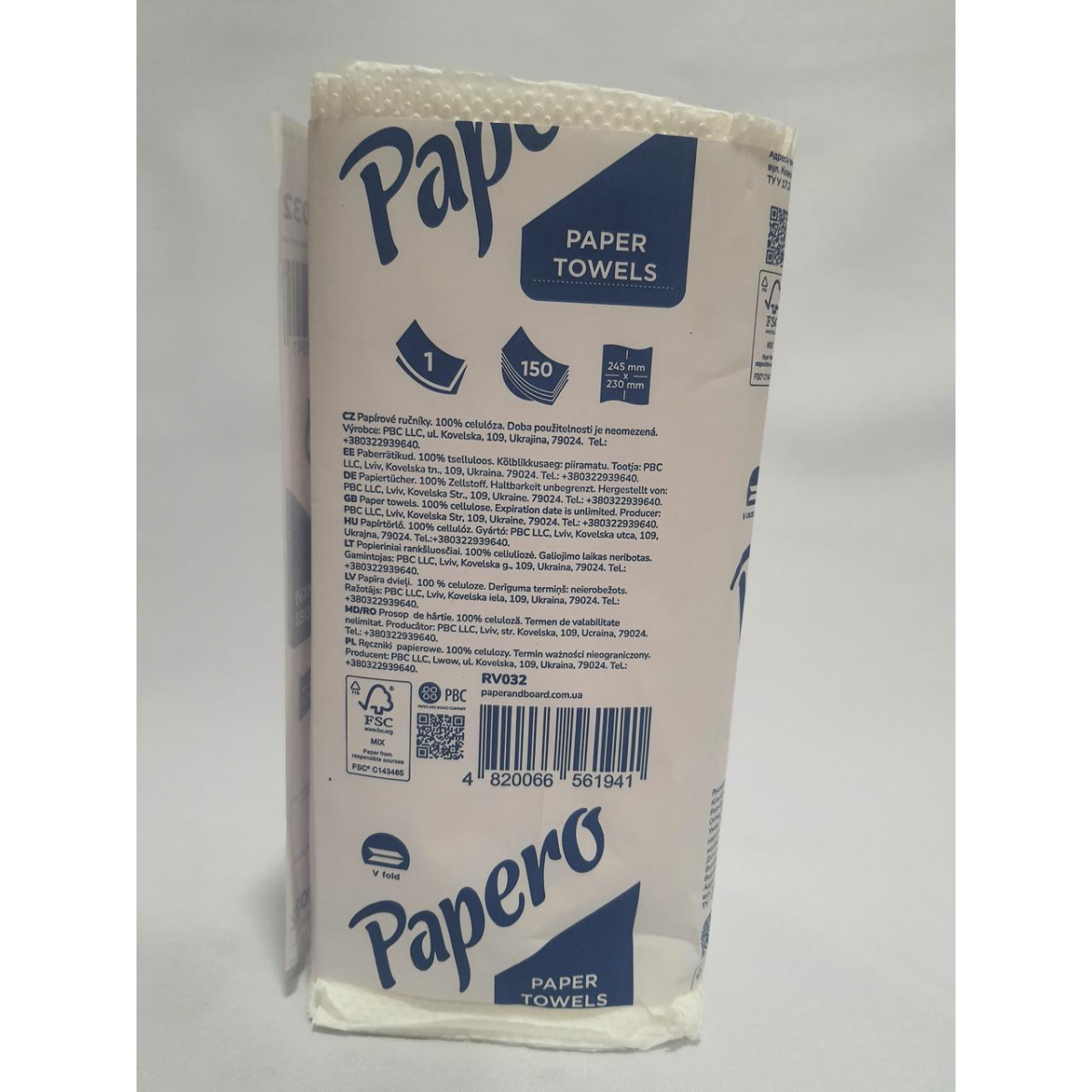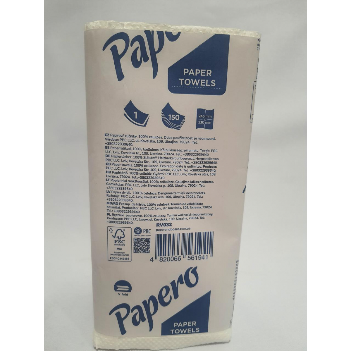 Рушник паперовий Papero V-складання 245×230 мм 150 листів