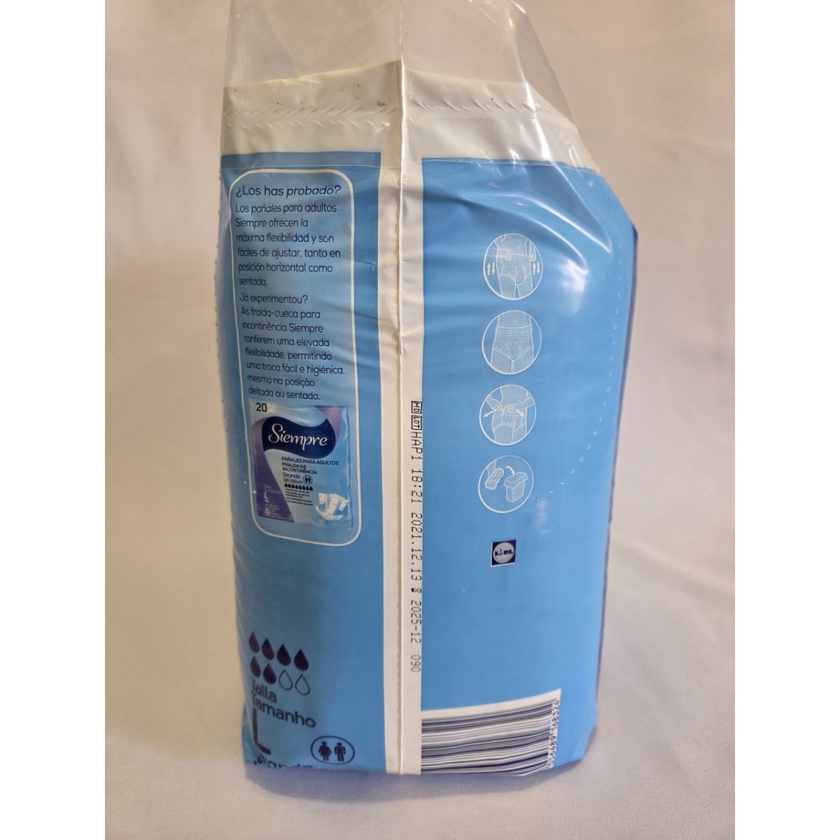Підгузки-труси Siempre 6 крапель: надійний захист і комфорт для дорослих Підгузки-труси Siempre — це оптимальне рішення для дорослих, які шукають комфорт, надійний захист від протікань і свободу рухів. Розроблені в Німеччині, ці підгузки відповідають найвищим стандартам якості та безпеки, забезпечуючи максимальний комфорт для користувача. Чому варто вибрати підгузки-труси Siempre? Високий рівень поглинання: Завдяки шести краплям поглинання ці підгузки ідеально підходять для середнього та високого ступеня нетримання. Надійний захист: Спеціальна технологія й анатомічна форма забезпечують повний захист від протікань, даючи змогу почуватися впевнено в будь-якій ситуації. Комфорт: Виготовлені з повітропроникного матеріалу, який не викликає подразнень і дає шкірі дихати. Зручність використання: Підгузки-труси легко надягати та знімати, що робить їх ідеальними для активних людей. Дискретність: Тонкий дизайн дає змогу носити підгузки під будь-яким одягом, не привертаючи зайвої уваги. Технічні характеристики: Розмір: L (великий) Обсяг талії/бедер: 100-150 см Кількість у пакунку: 14 штук Країна виробництва: Германия Рівень поглинання: 6 капель Як використовувати? Одягання: Одягніть підгузок-трус, як звичайну білизну. Зняття: Для зняття розірвіть бічні шви. Утилізація: Згорніть використаний підгузок і викиньте у сміття. Застосування: Для дорослих із середнім або високим ступенем нетримання. Для людей, які ведуть активний спосіб життя. Для людей, які проходять реабілітацію після операцій. Купуйте підгузки-труси Siempre і насолоджуйтеся свободою й комфортом!
